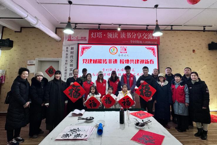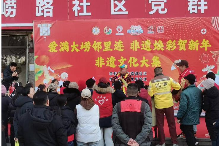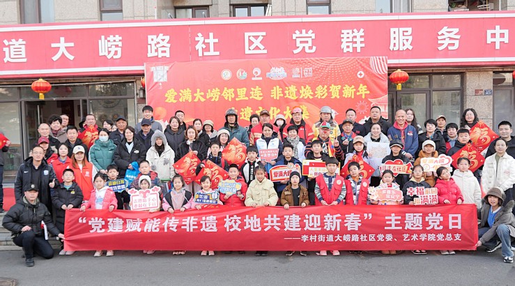 本网讯(艺术学院 邵常恩)为弘扬中华优秀传统文化,以党建赋能非遗文化传承,深化校地共建育人成效,丰富社区居民精神文化生活,2月4日下午,艺术学院联合李沧区李村街道大崂路社区、东北庄社区,携手民革李沧区基层委、李沧区政协文化文史和学习委员会、李沧区政协工商联组,精心策划并举办“党建赋能传非遗 校地共建迎新春”主题党日暨非遗大集活动,让居民在家门口沉浸式感受非遗魅力,让校地共建之花在新春佳节绽放,让党建力量赋能传统文化传播。