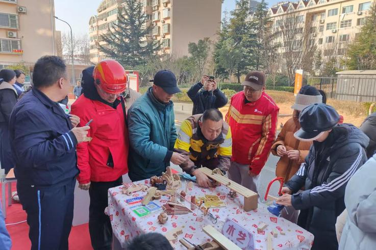随后,剪纸、面塑、木艺、螺钿、糖葫芦、绣球技艺、掐丝珐琅等多个非遗项目依次亮相,成为活动中的亮点。为让非遗传承更具广泛性,学院师生主动引导,邀请外卖小哥、网约车司机、快递员等新就业群体放下忙碌的工作,跟着非遗传承人拿起刻刀、打磨砂纸,亲手制作属于自己的非遗作品。大家在动手实践中感受传统技艺的匠心与魅力,也让非遗文化打破圈层,走进更多群体心中,切实落实校地共建、文化共享的理念。
